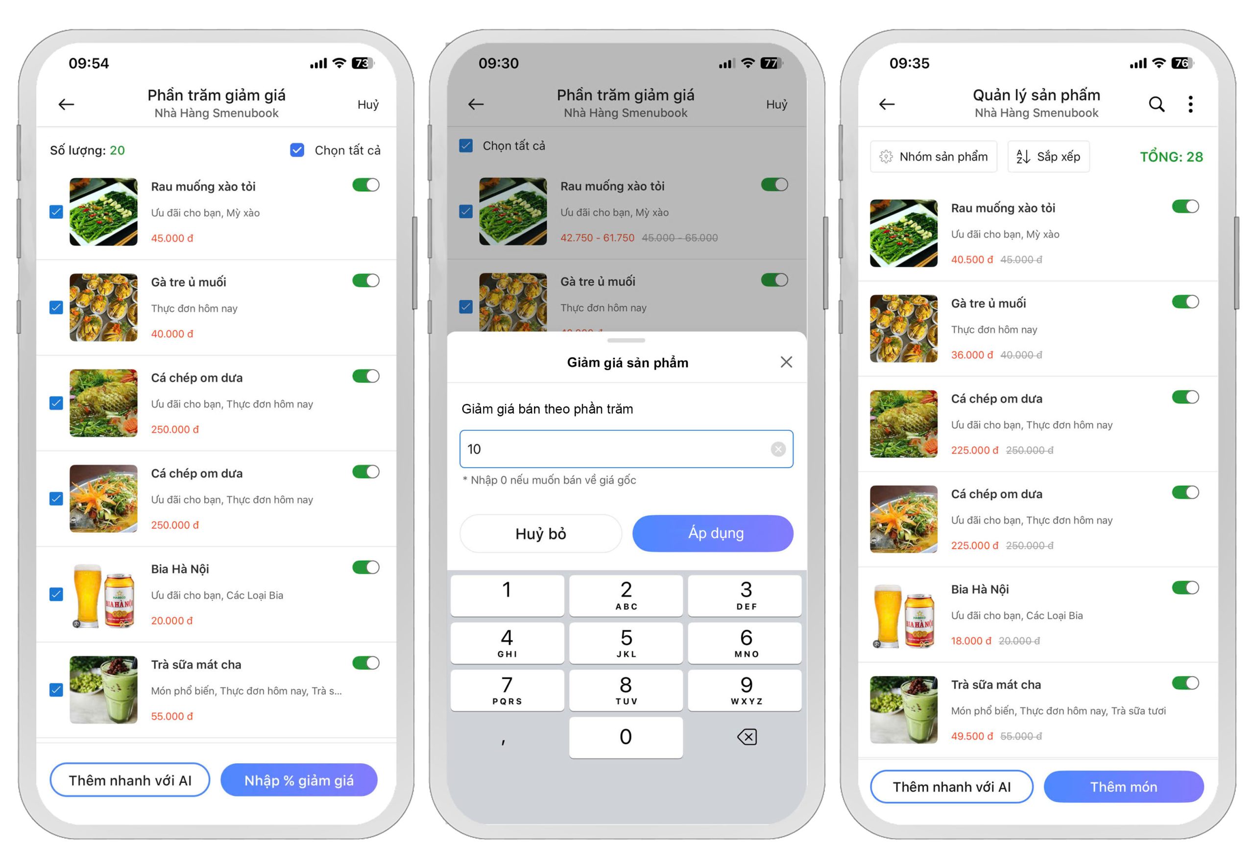 Để chắc chắn rằng giá mới đã được áp dụng sau khi khuyến mãi, bạn xem lại giá món trên Thực đơn công nghệ nhé.