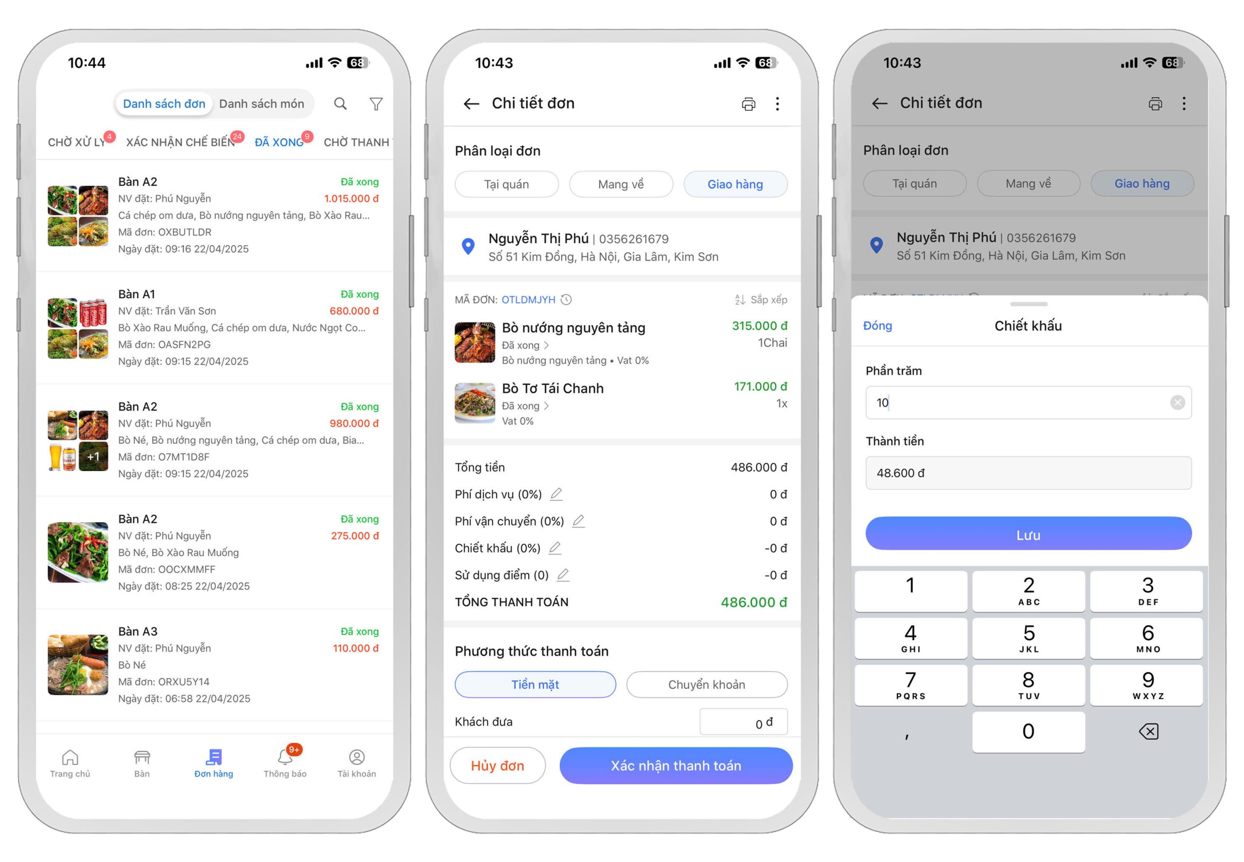 2. Trong chi tiết đơn, kéo xuống nhấn vào Chiết khấu (%)
