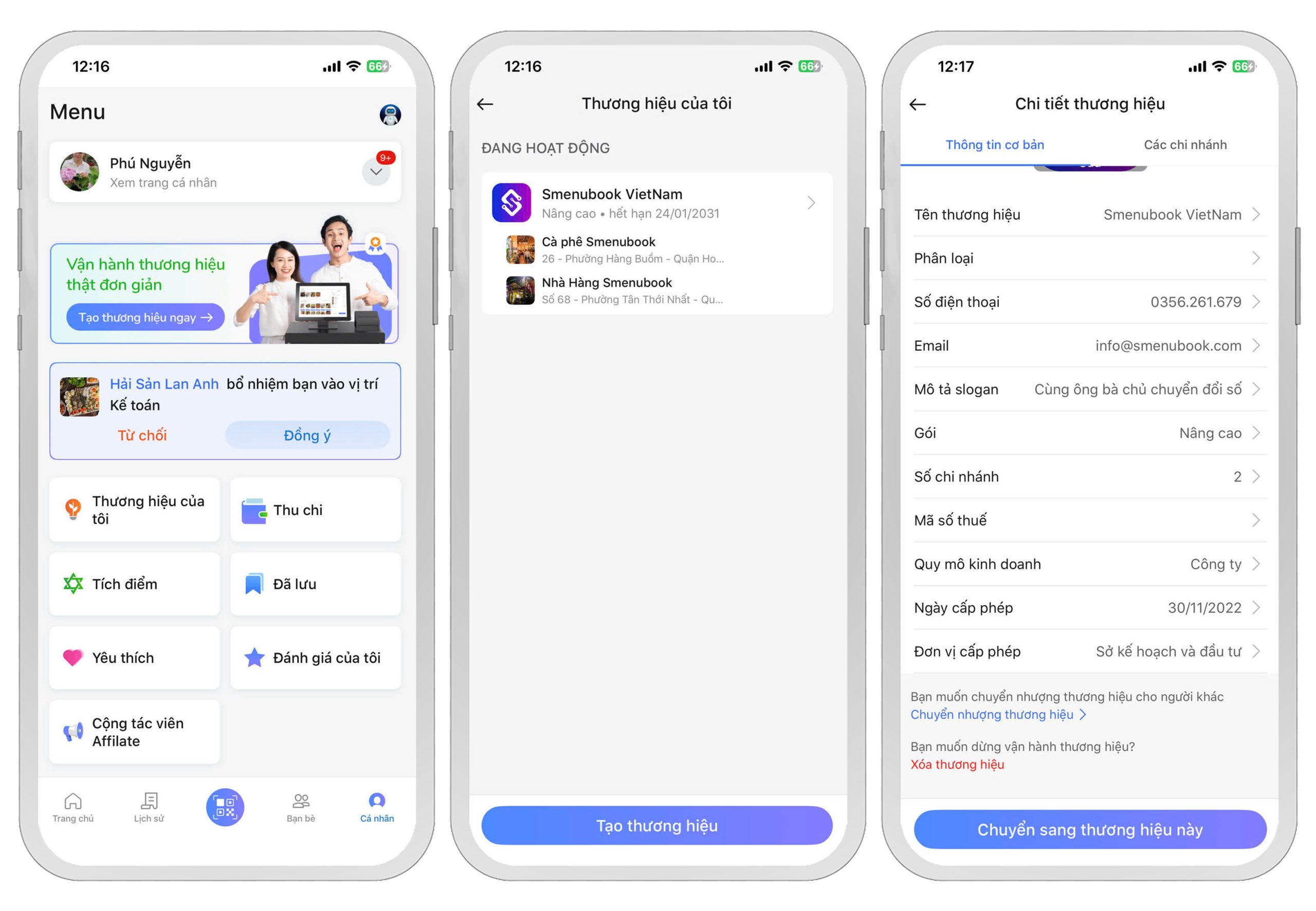 Khi doanh nghiệp thực hiện mua bán, sáp nhập, việc chuyển nhượng chi nhánh hoặc cả thương hiệu là điều thường thấy. Để bảo toàn dữ liệu khách hàng quý giá và tiếp tục phát triển tên tuổi thương hiệu mà chủ cũ đã dày công gây dựng, Smenubook cung cấp tính năng chuyển quyền sở hữu tài khoản thương hiệu. Tính năng này giúp việc bàn giao thương hiệu trở nên dễ dàng, minh bạch và không gián đoạn trong quá trình vận hành.