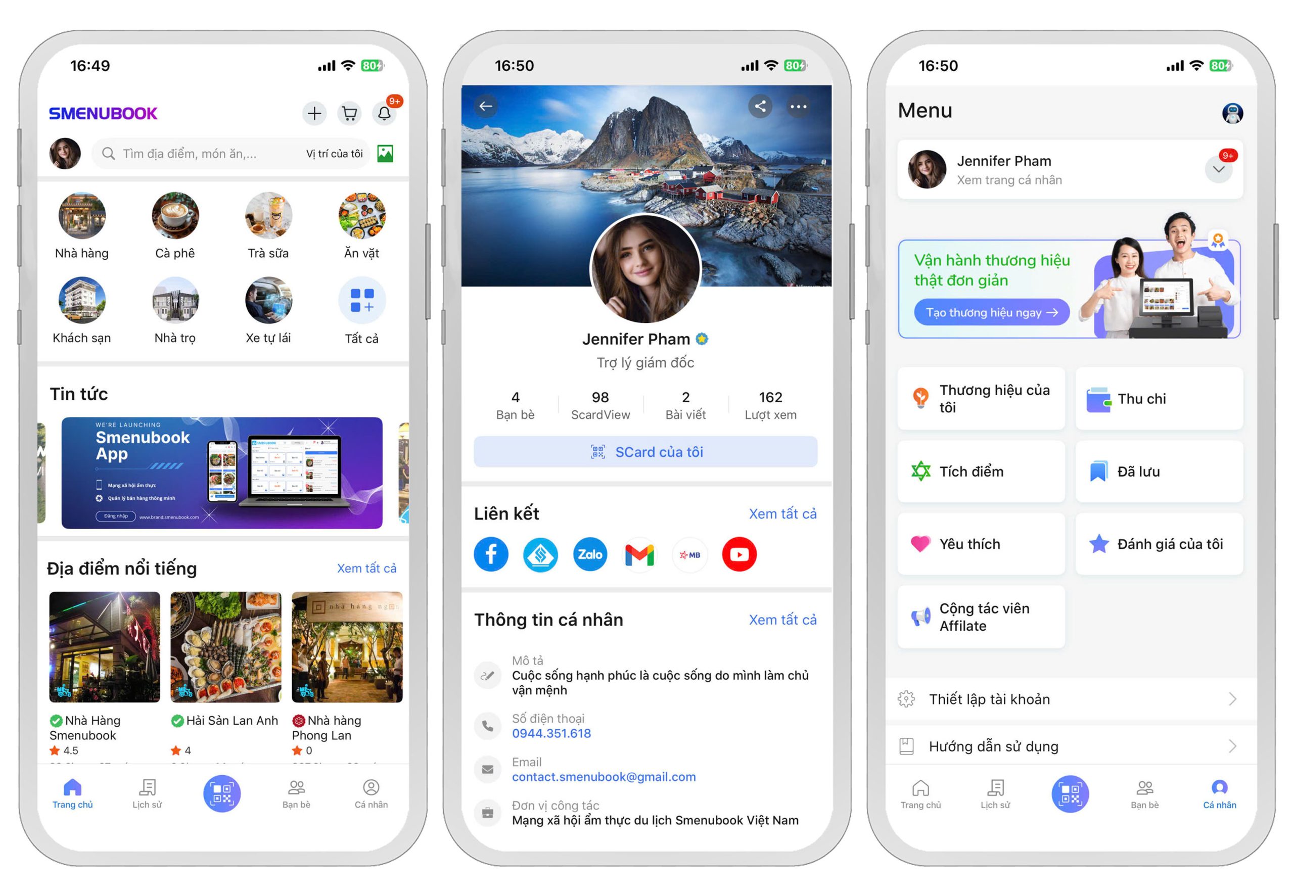 Bước 2: Trong giao diện Trang chủ của ứng dụng Smenubook, có rất nhiều địa điểm để bạn khám phá. Xem các bài viết chia sẻ ẩm thực về địa điểm mà bạn muốn đến du lịch, hoặc xây dụng cho mình một thương hiệu trên nền tảng Smenbook. Hãy cùng nhau trải nghiệm nhé!