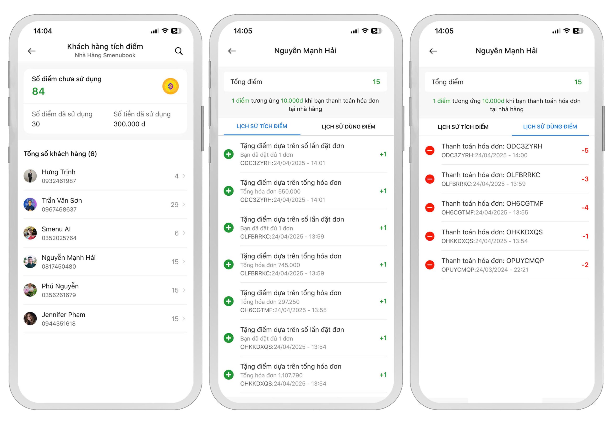 Danh sách toàn bộ khách hàng đang được tích điểm