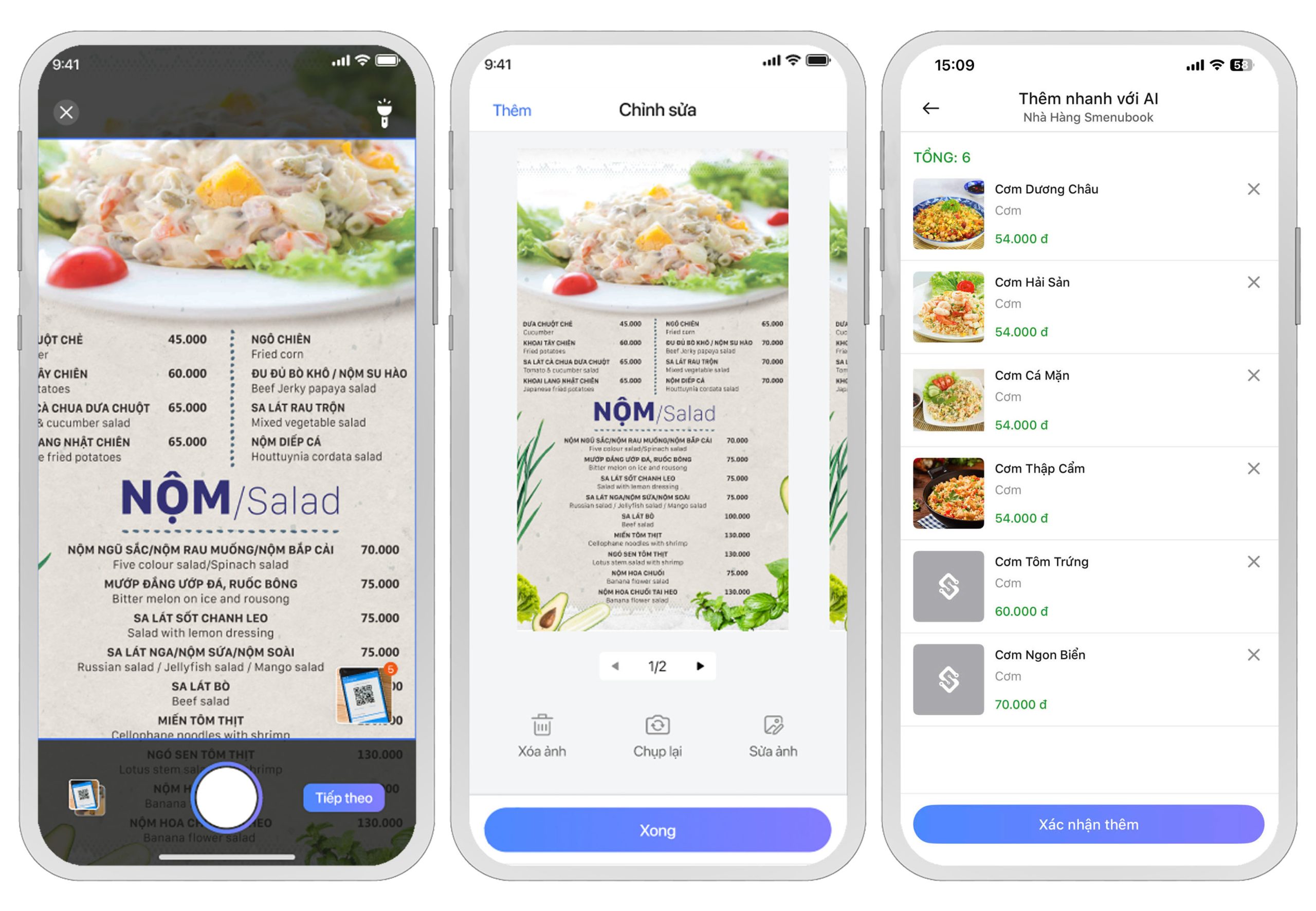 Lúc này, Trợ lý SME AI sẽ tự động xử lý hình ảnh và tạo hàng loạt sản phẩm dựa trên thông tin bạn cung cấp. Bạn chỉ cần kiểm tra lại các thông tin sản phẩm, nếu đã chính xác thì nhấn “Xác nhận thêm” để đưa các sản phẩm vào thực đơn của mình.