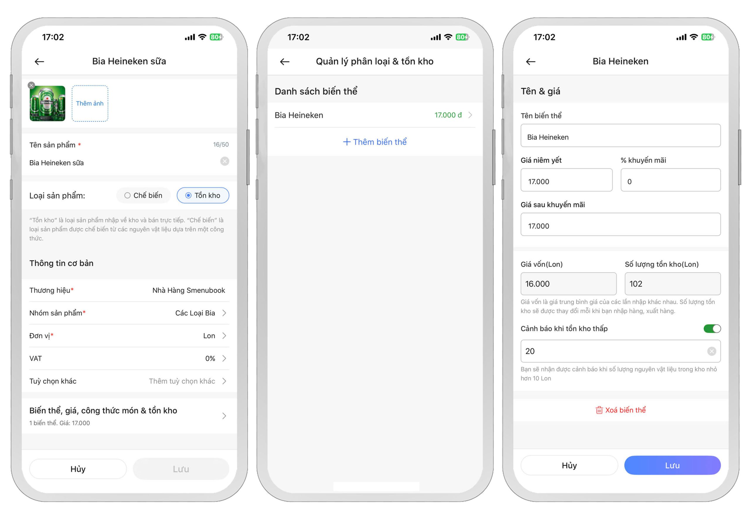 Để quản lý tốt số lượng tồn kho và có báo cáo lãi lỗ đầy đủ, bạn cần nhập đầy đủ thông tin gồm: giá vốn, số lượng tồn kho hiện tại và đặt cảnh báo tồn kho để ứng dụng tự động thông báo khi số lượng xuống thấp.