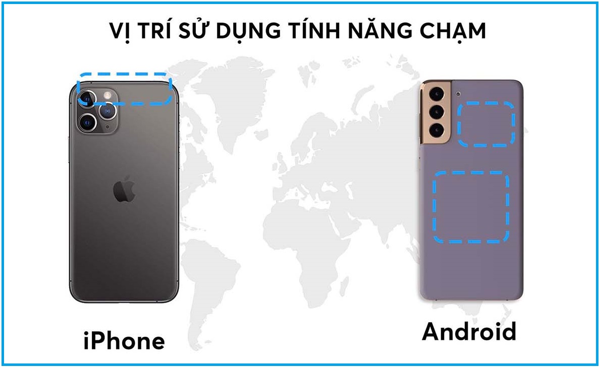 - Hệ điều hành Android: Vị trí chạm sẽ là ở giữa mặt sau điện thoại hoặc kế bên camera.